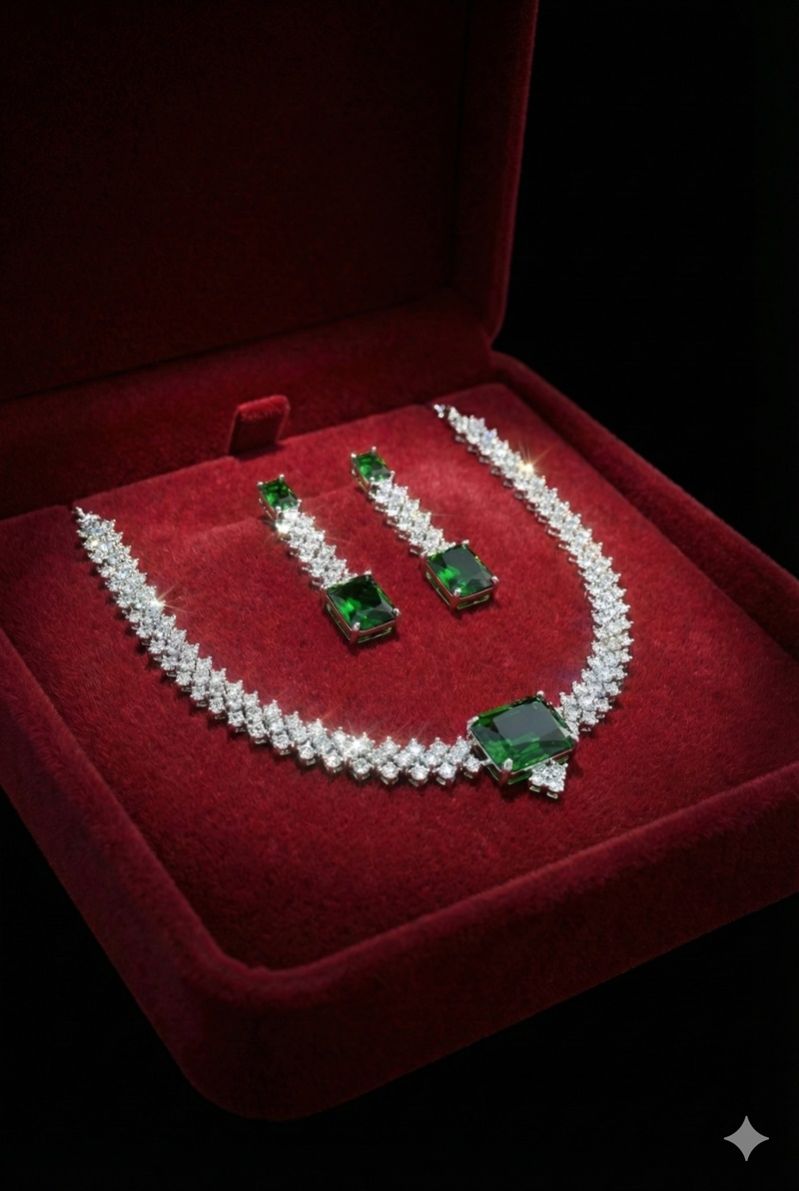 Lightweight, comfortable, and finished with premium plating, this piece offers long-lasting brilliance and exceptional detailing. The vivid emerald hue pairs beautifully with sarees, gowns, lehengas, evening dresses, and Indo-western outfits — making it a perfect choice for weddings, receptions, festive occasions, and special celebrations.