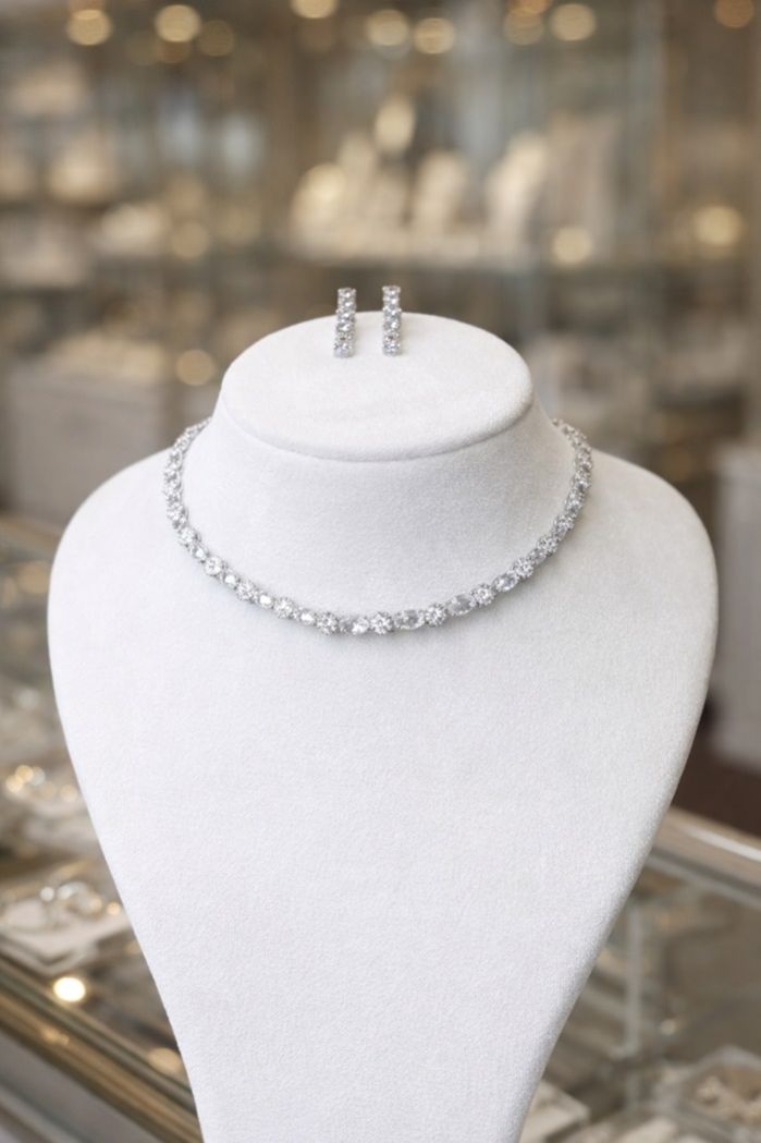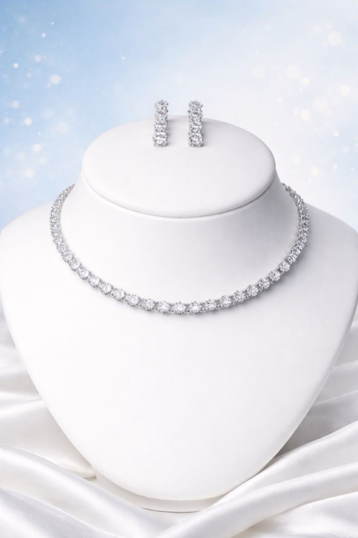 A refined diamond-look necklace set crafted with graceful symmetry for timeless elegance and effortless glamour.